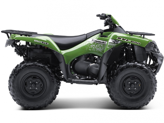 Комплектация Kawasaki KVF650 4x4 оснащена вариаторной коробкой передач, 0.6 литровым двигателем (47 л.с.). Данная модификация обладает полным приводом. Стоимость данного квадроцикла составляет 804 800 руб.